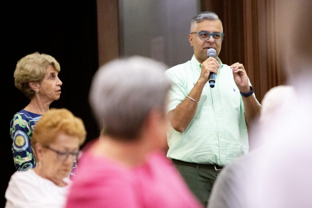 Senior Vice President of Community Relations and Chief IDEA Officer Amit Taneja speaks about the role of volunteering on the grounds. VON SMITH/STAFF PHOTOGRAPHER