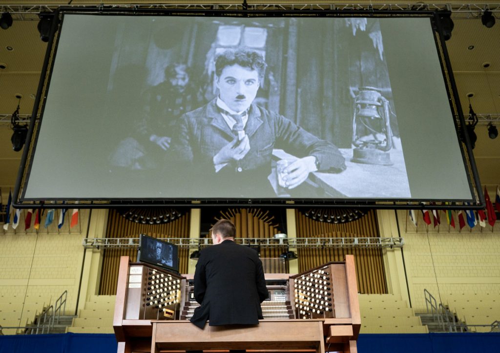 Jared Jacobsen Chair for the Organist and Director of Sacred Music Joshua Stafford performs the score to the Charlie Chaplin film “The Gold Rush” on the Massey Memorial Organ July 25, 2021, in the Amphitheater. DAVE MUNCH/DAILY FILE PHOTO