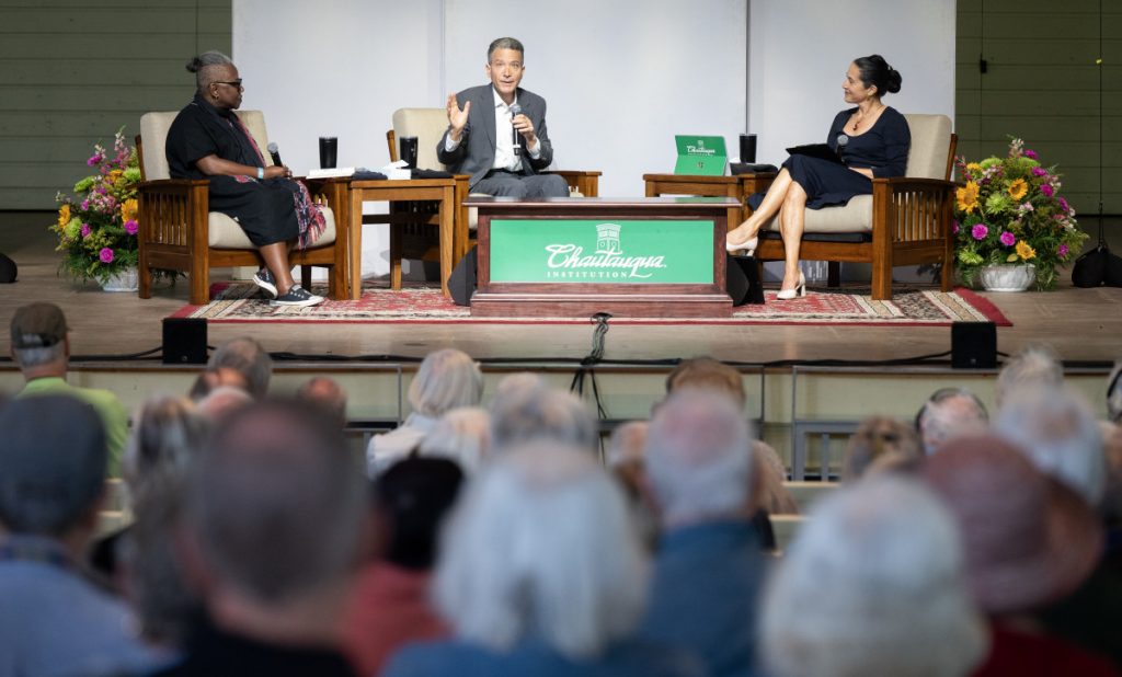During the 2026 season, the Chautauqua Lecture Series will devote a full week to “The Importance of Gathering” in collaboration with the Smithsonian Folklife Festival, and another week devoted to the National Constitution Center and The Colonial Williamsburg Foundation to celebrate the United States’ semiquincentennial. At 10:45 a.m. Thursday in the Amphitheater, Chautauqua got a preview of these weeks and a taste of why storytelling matters and how lifelong learning keeps democracy alive.